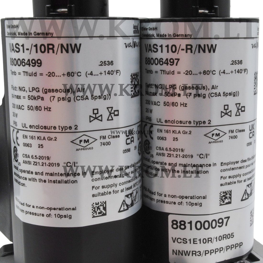 Replacing a Kromschroder VCS 1E10R/10R05NNWR3/PPPP/PPPP, 88100097 double solenoid valve is a good solution to make your equipment work again. We offer a wide range of Kromschroder spare parts for burners, gas trains etc. We supply original Elster (Kromschröder) & Honeywell (Maxon) products.